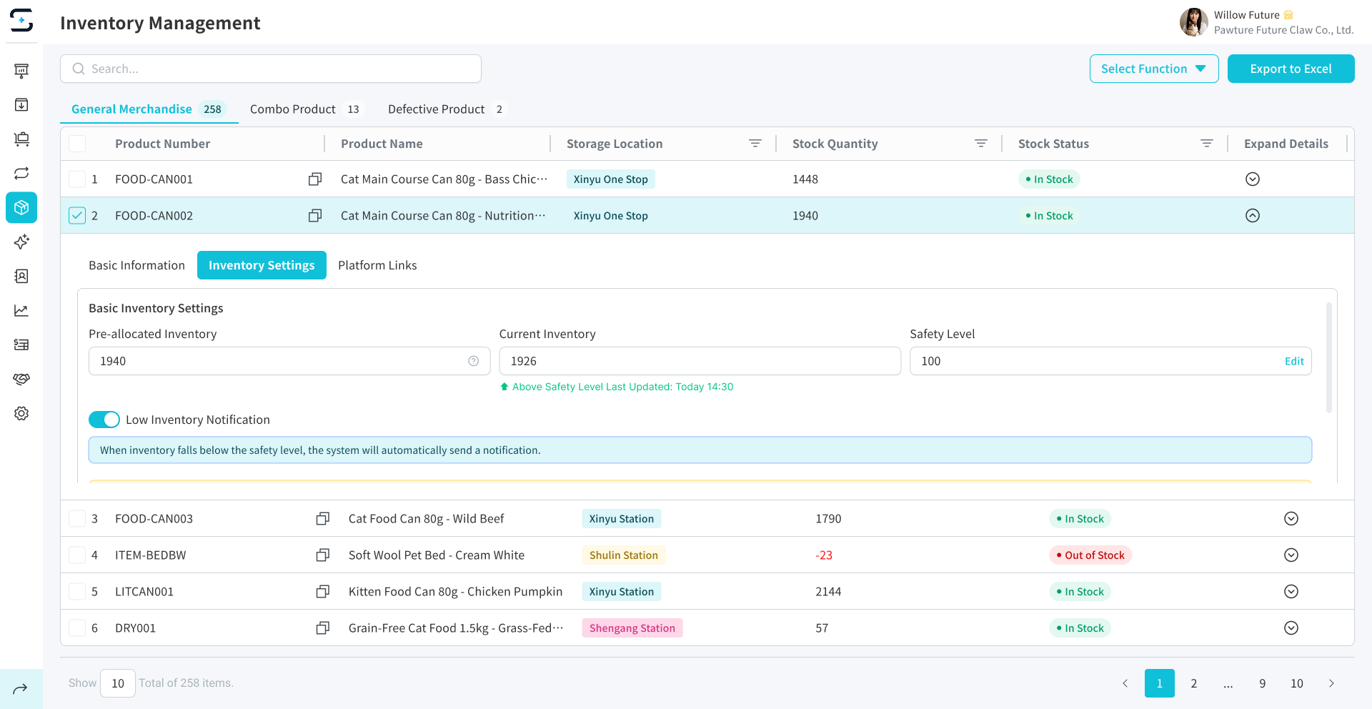 Use filters and search to quickly locate SKUs, review inventory changes, and understand where items are stored at any moment.
